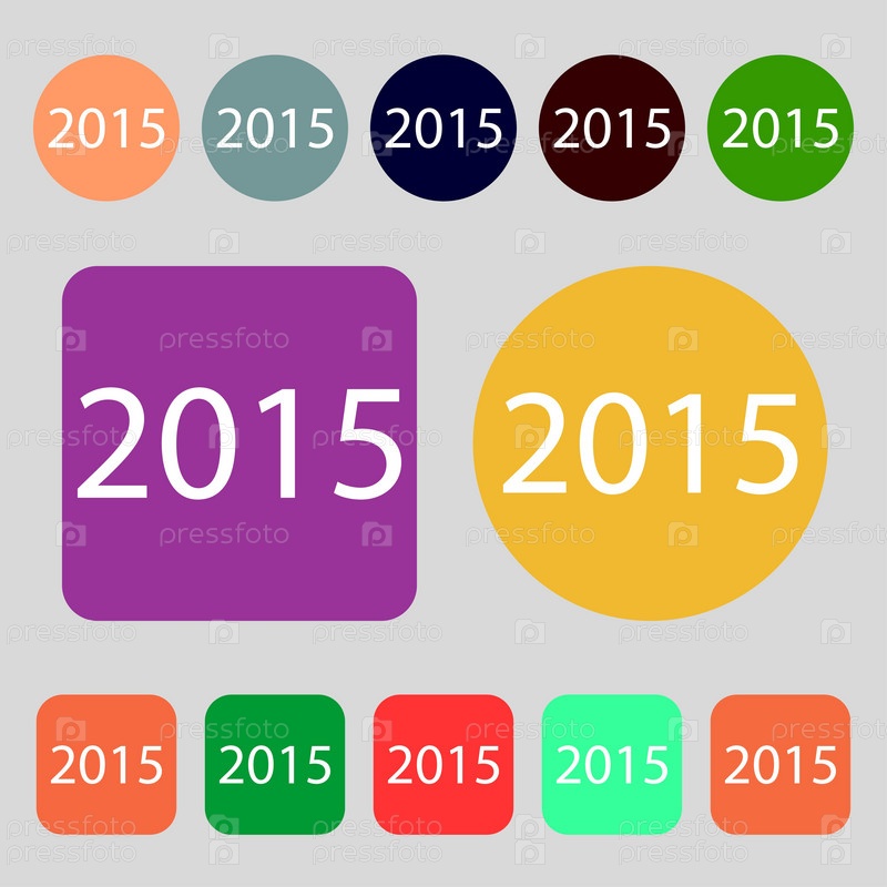 Счастливый Новый год к 2015 году знак значок. Календарная дата. 12 цветных кнопок. Плоский дизайн. Вектор