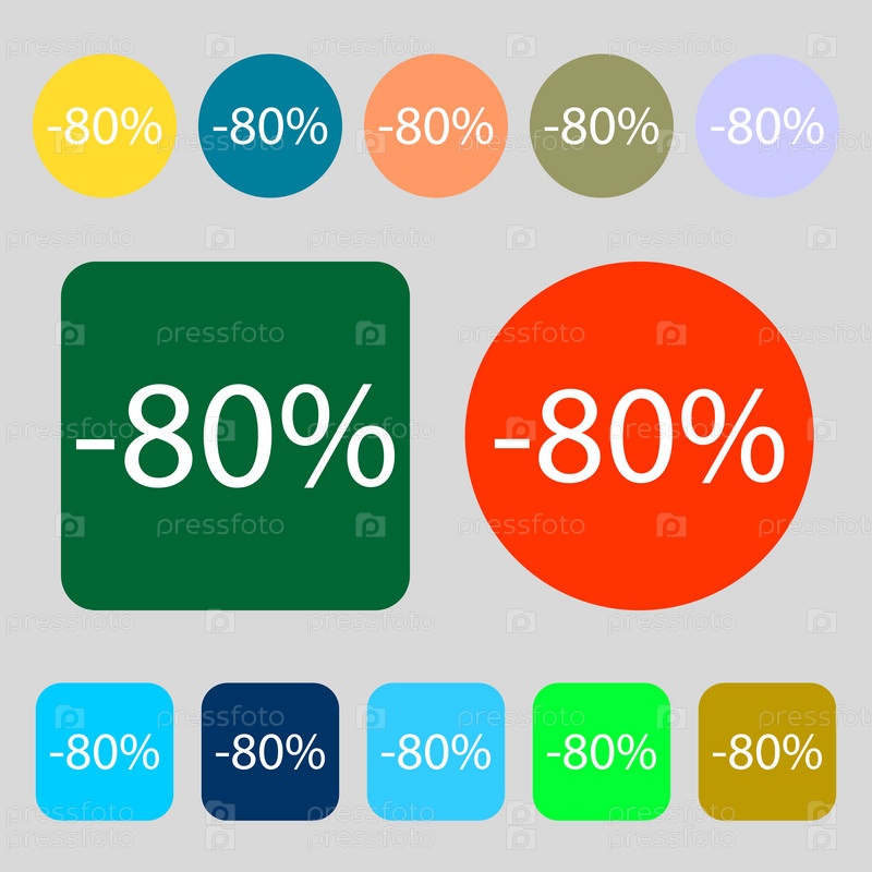 80% скидка знак значок. Продажа символ. Специальное предложение метка. 12 цветных кнопок. Плоский дизайн. Вектор