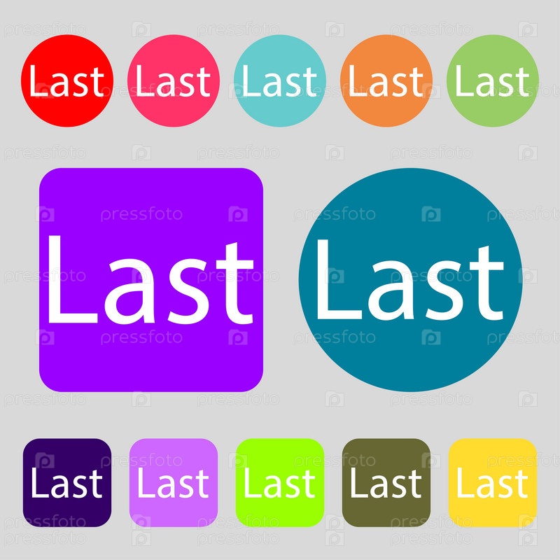 Последний знак значок. Символ навигации. 12 цветных кнопок. Плоский дизайн. Вектор