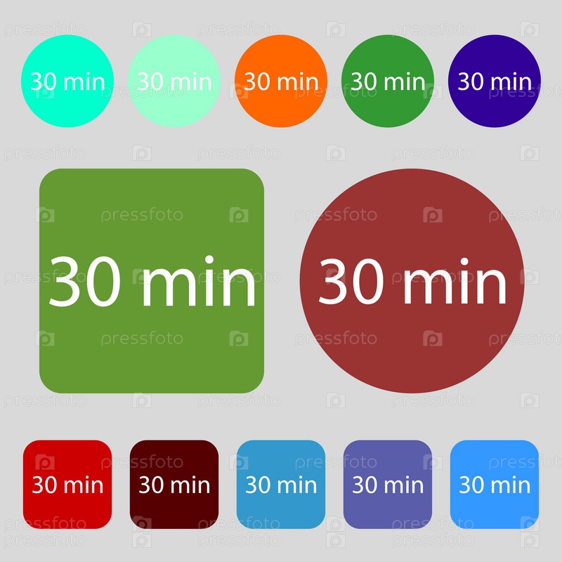 Тридцать минут знак значок. 12 цветных кнопок. Плоский дизайн. Вектор