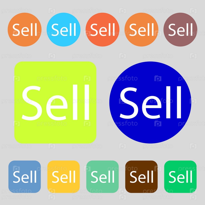 Продаете знак значок. Вкладчик заработка кнопка. 12 цветных кнопок. Плоский дизайн. Вектор