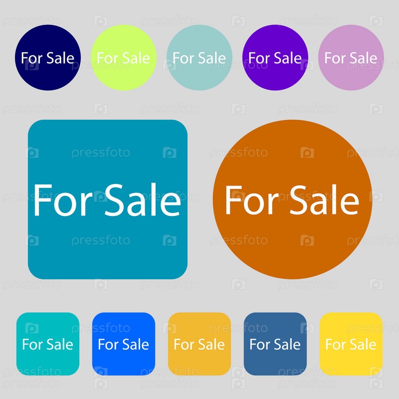 Для продажи знак значок. Продажи недвижимости. 12 цветных кнопок. Плоский дизайн. Вектор