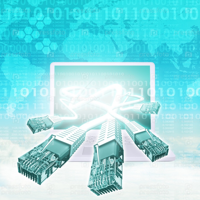 Абстрактный фон с компьютером и картой мира