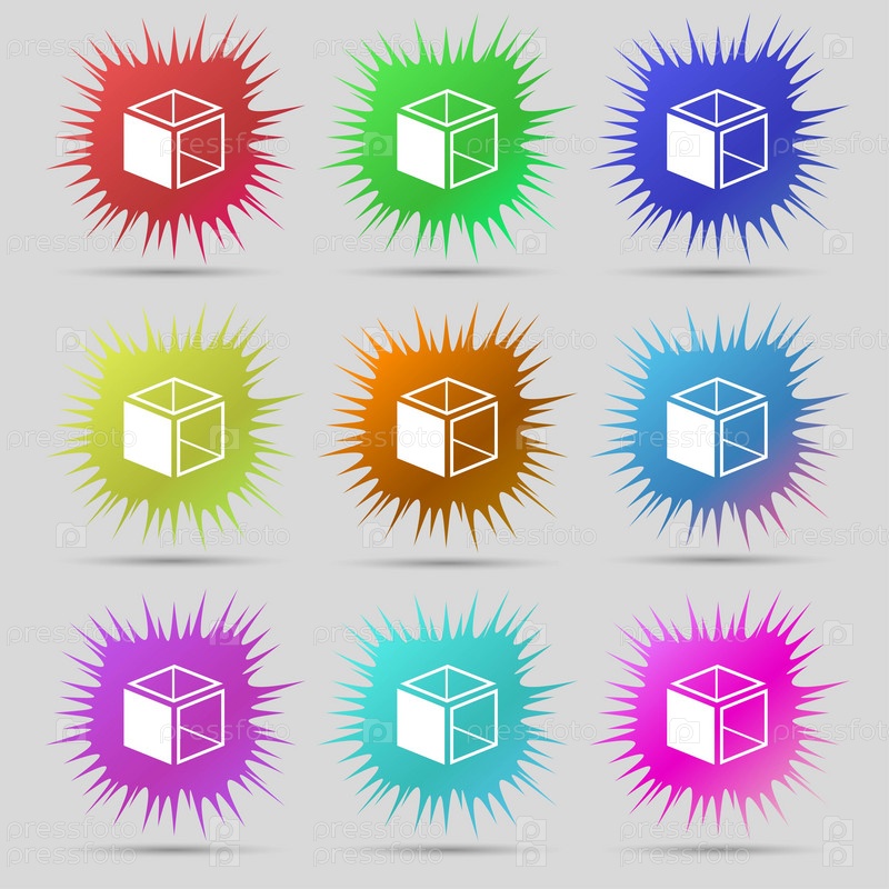 3D кубический значок символа. девять оригинальных игл кнопок. вектор