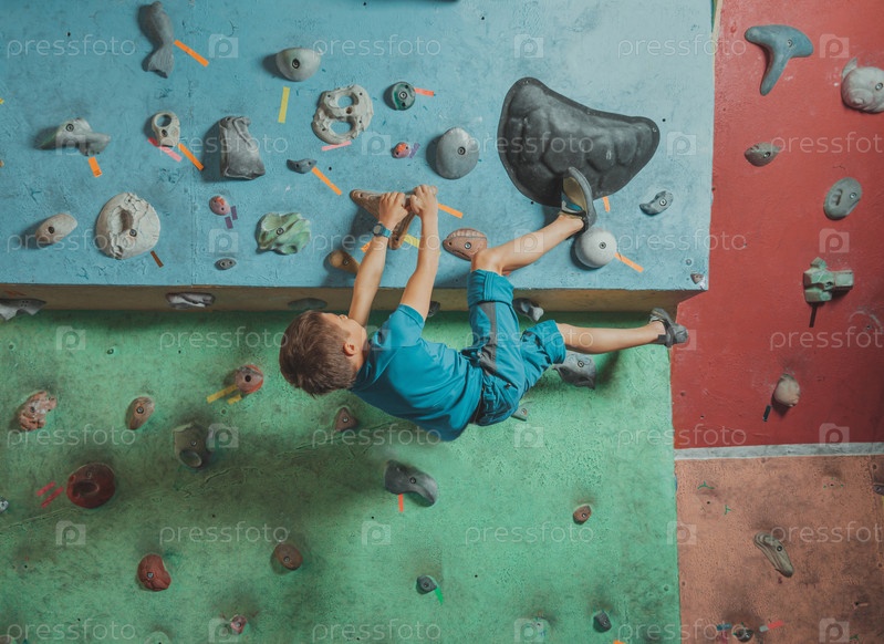 Мальчик восхождение на скалодроме