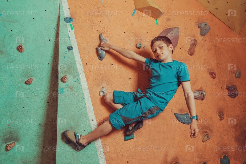 Мальчик восхождение на скалодроме