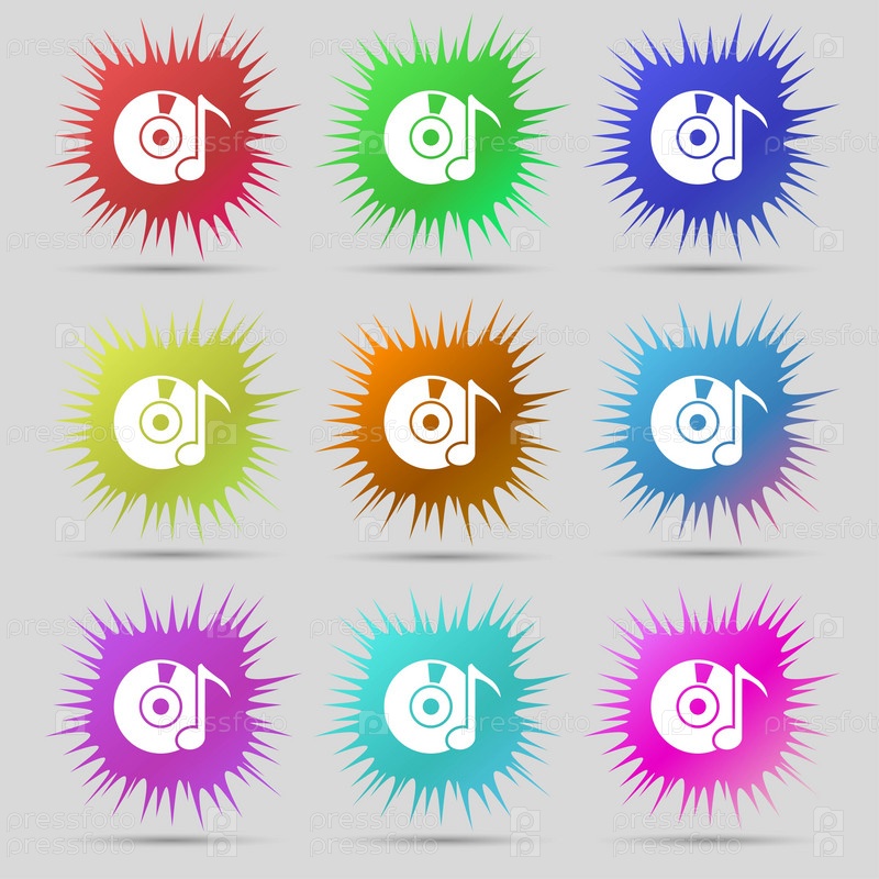 Знак значка на компакт-диске или DVD. Девять оригинальных игл кнопок. Вектор