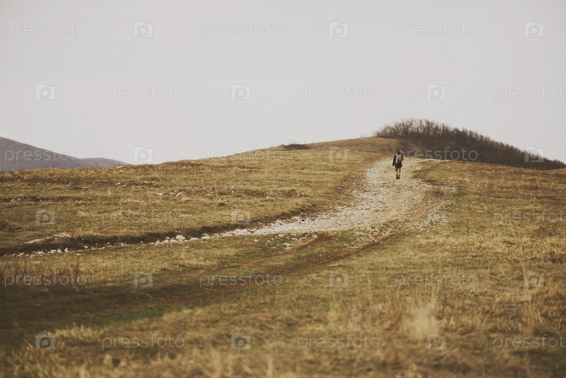 Одинокий туристы на холме