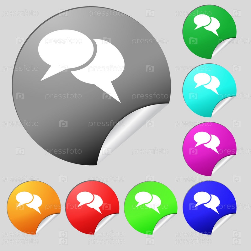 Речи пузырь иконки. Думаю, что облако символы. Набор из восьми цветные круглые кнопки, наклейки. Вектор