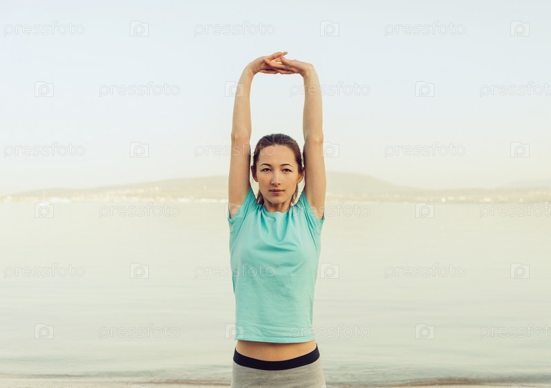 Красивая девушка тренируется на пляже