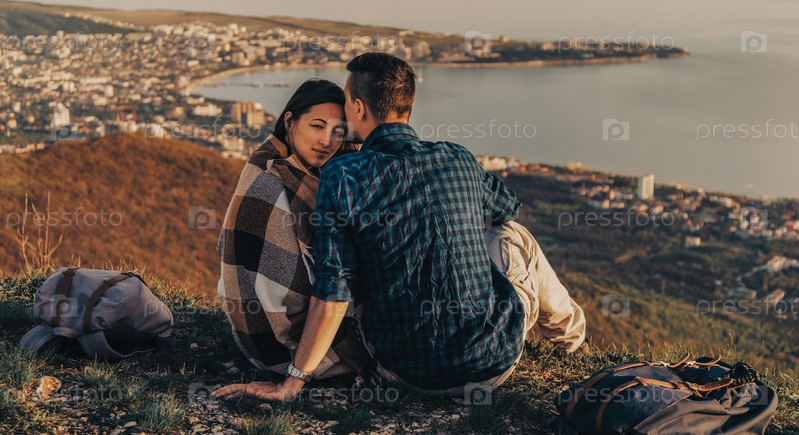 Пара в горах на закате