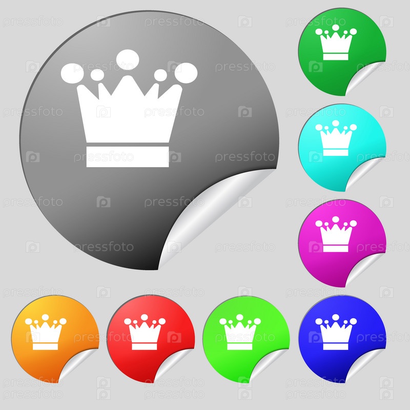 Корона значок знак. Набор из восьми цветные круглые кнопки, наклейки. Вектор