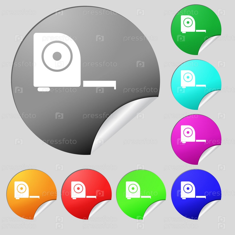Рулетка строительство значок знак. Набор из восьми цветные круглые кнопки, наклейки. Вектор