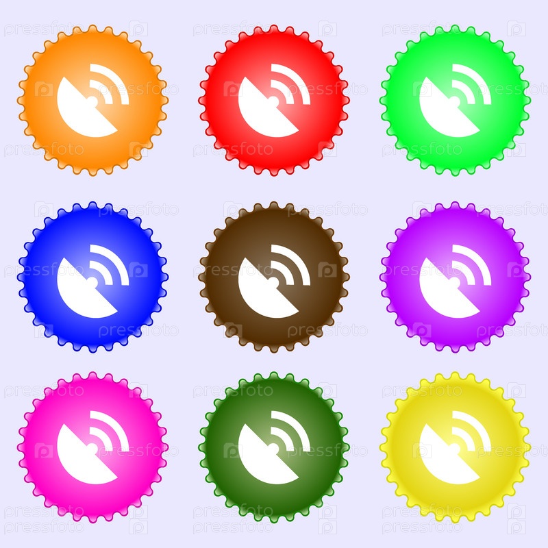Икона GPS. плоский, современный. набор из девяти различных цветовых меток. вектор