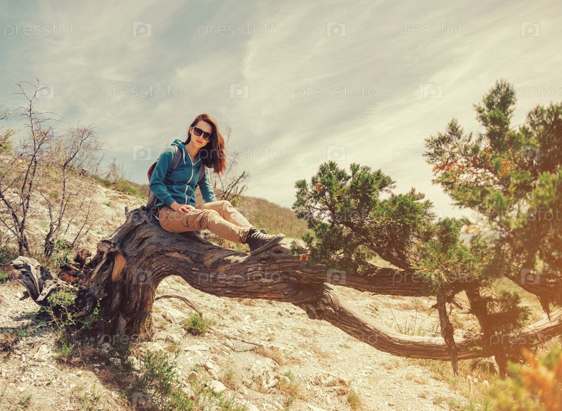 Девушка на старом дереве