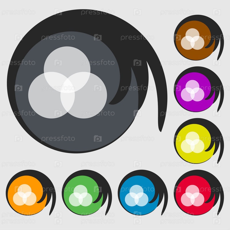 Цветовая схема значок знак. Символы на восьми цветных кнопок. Вектор