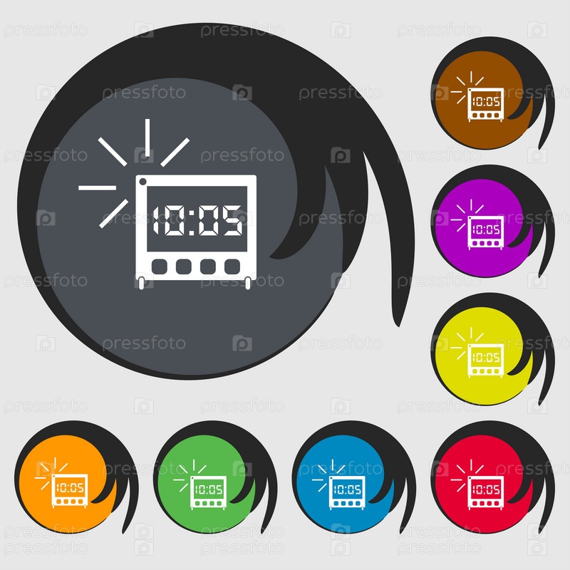 Цифровые будильник значок знак. Символы на восьми цветных кнопок. Вектор