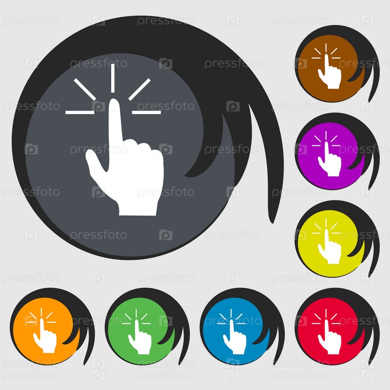 Здесь знак значок руки. Символы на восьми цветных кнопок. Вектор