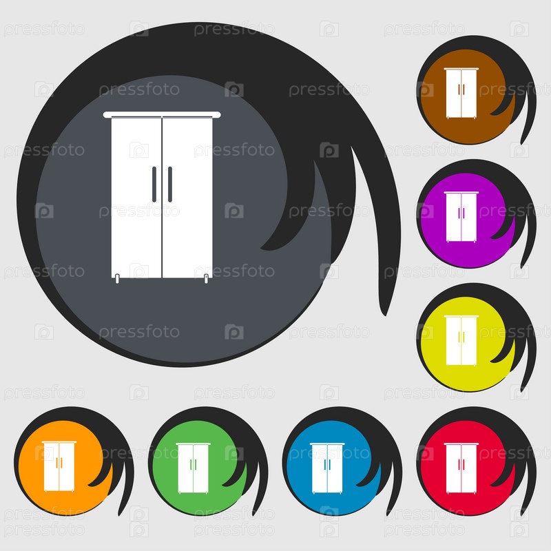 Шкаф значок знак. Символы на восьми цветных кнопок. Вектор