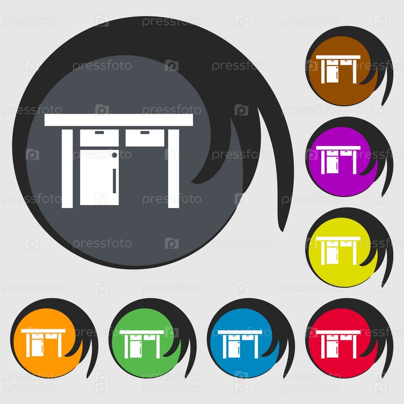 Таблица значок знак. Символы на восьми цветных кнопок. Вектор
