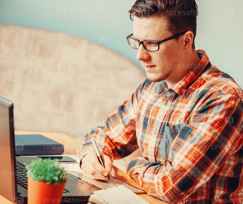 Человек, работающий с графическим планшетом