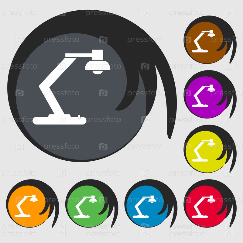 Свет, лампы, электричество значок знак. Символы на восьми цветных кнопок. Вектор