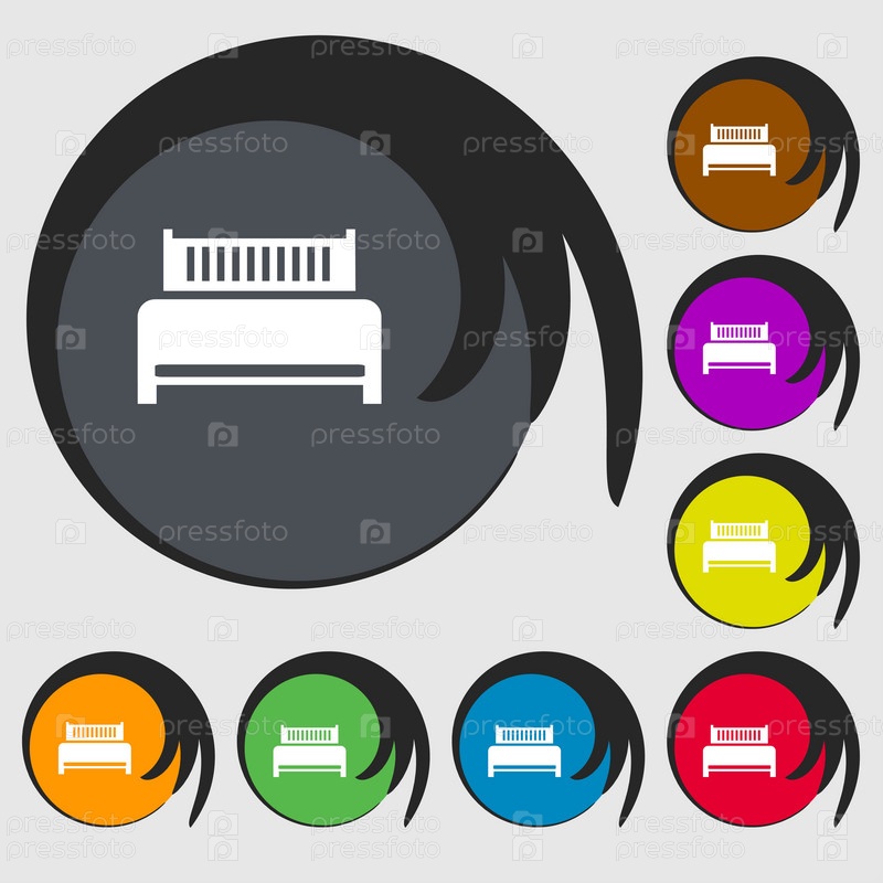 Отель, кровать значок знак. Символы на восьми цветных кнопок. Вектор