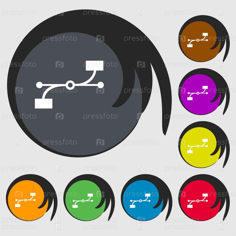 Кривая Безье значок знак. Символы на восьми цветных кнопок. Вектор