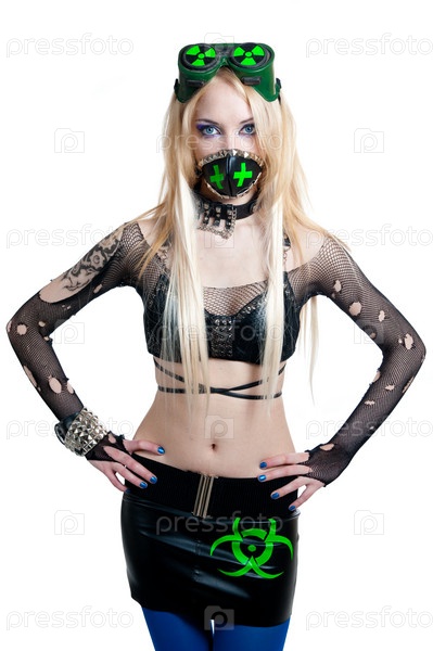 Красивая блондинка в костюме киборга