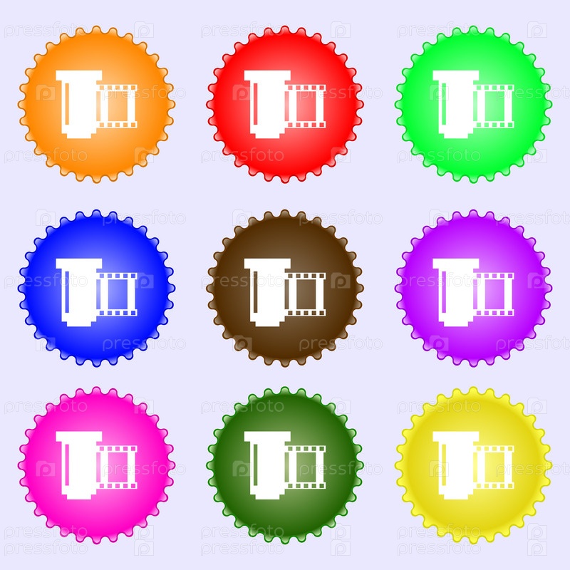 Негативных пленок значок символа. Набор из девяти различных цветных этикеток. Вектор
