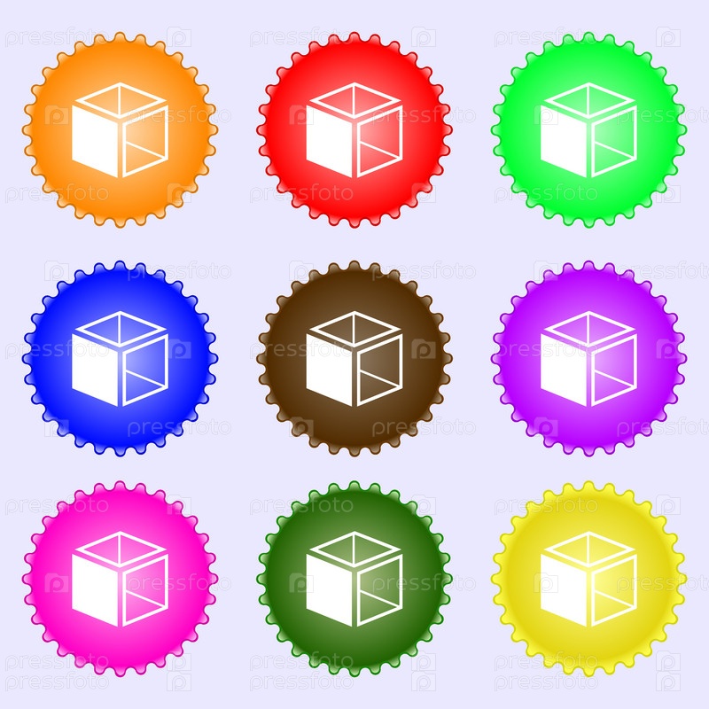 3D кубический значок символа. набор из девяти различных цветовых меток. вектор