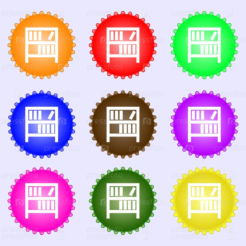 Полке значок знак. Набор из девяти различных цветных этикеток. Вектор