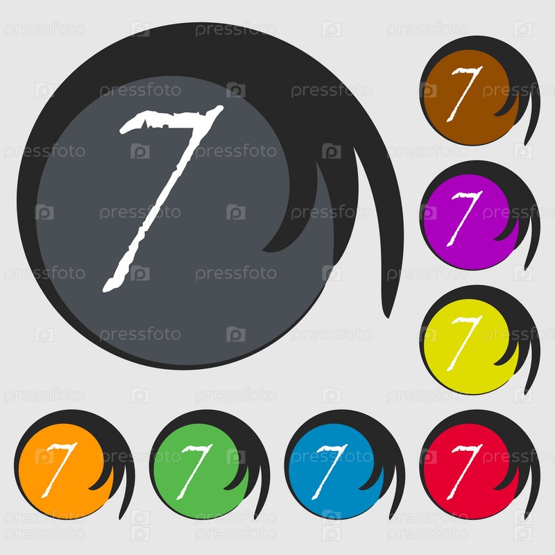 Число семь значок знак. Символы на восьми цветных кнопок. Вектор
