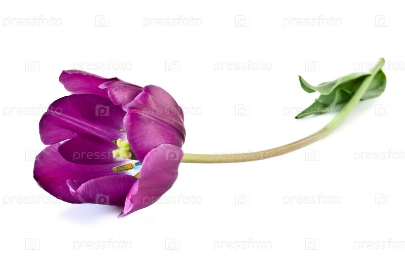 Фиолетовый тюльпан на белом фоне
