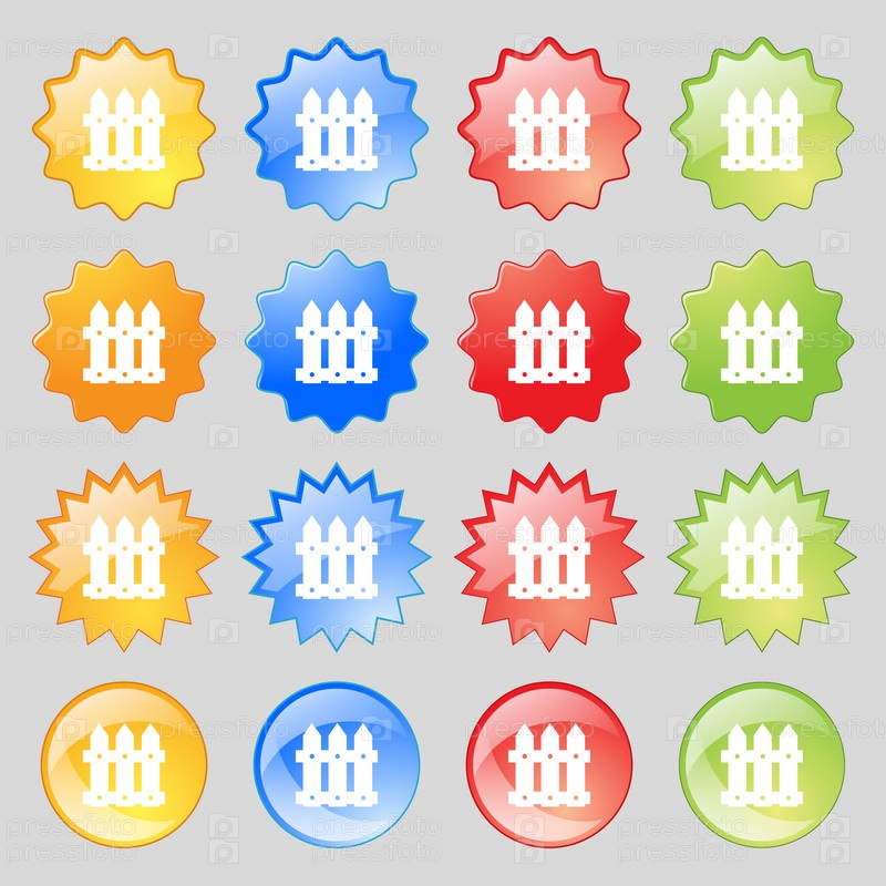 Забор значок знак. Большой набор 16 красочные современные кнопок для вашего дизайна. Вектор
