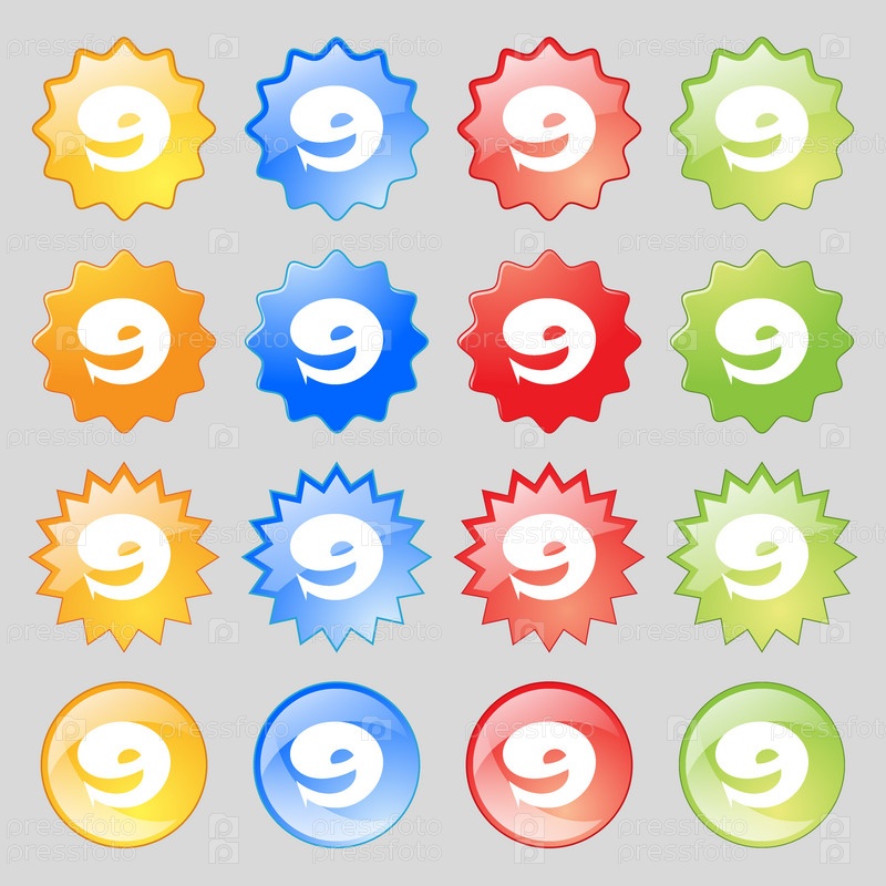 Номер девять значок знак. Большой набор 16 красочные современные кнопок для вашего дизайна. Вектор