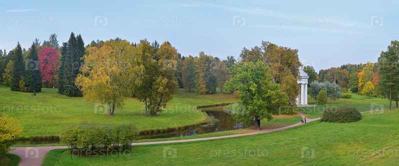 Панорама долины реки Славянки в Павловске осенью