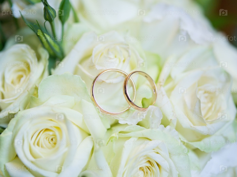 Обручальные кольца на белых розах