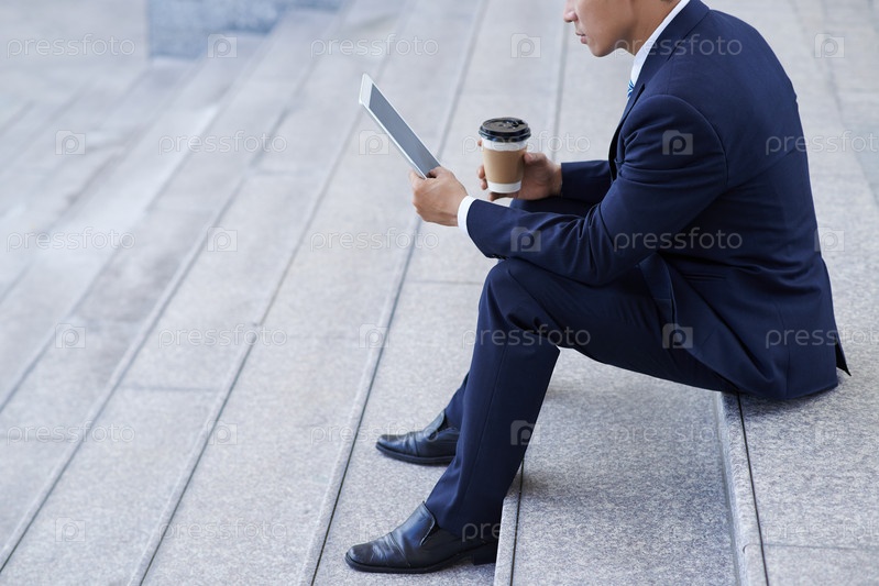 Бизнесмен с планшетом на перерыве