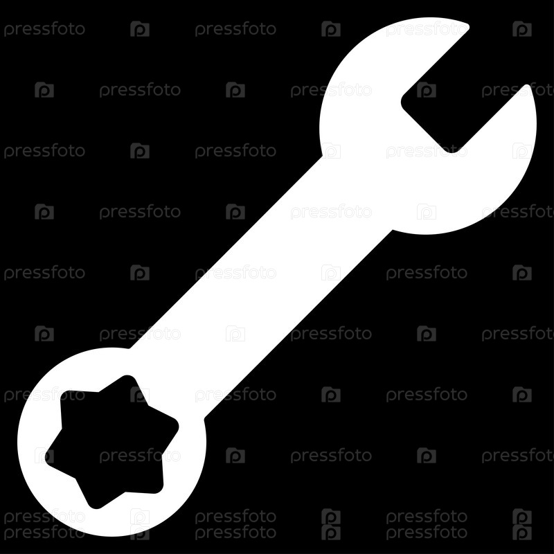 Растровые значок гаечного ключа. Стиль является плоской символ, белый цвет, закругленные углы, черный фон