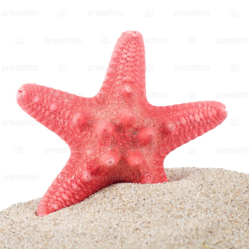 Морская звезда в песке на белом фоне