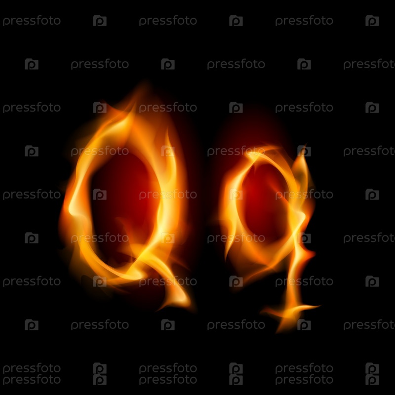 Буквы Q и q огненным шрифтом на черном фоне