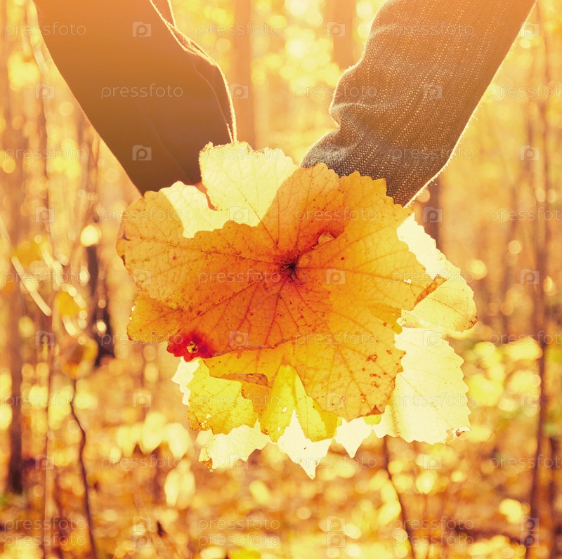 Влюбленная пара с осенними листьями