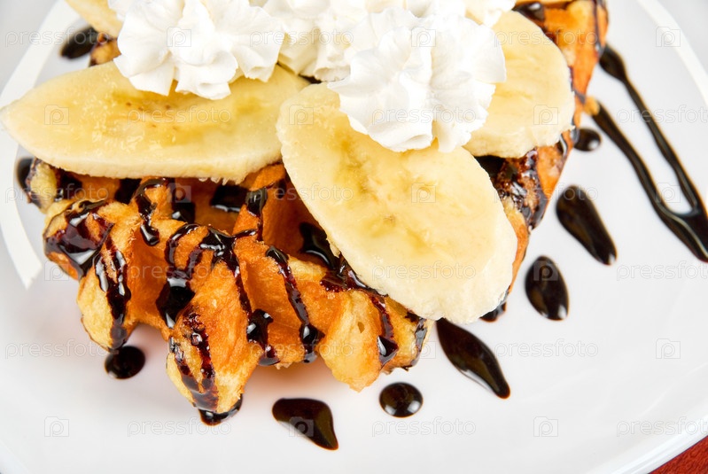 Вафли с бананами и взбитыми сливками