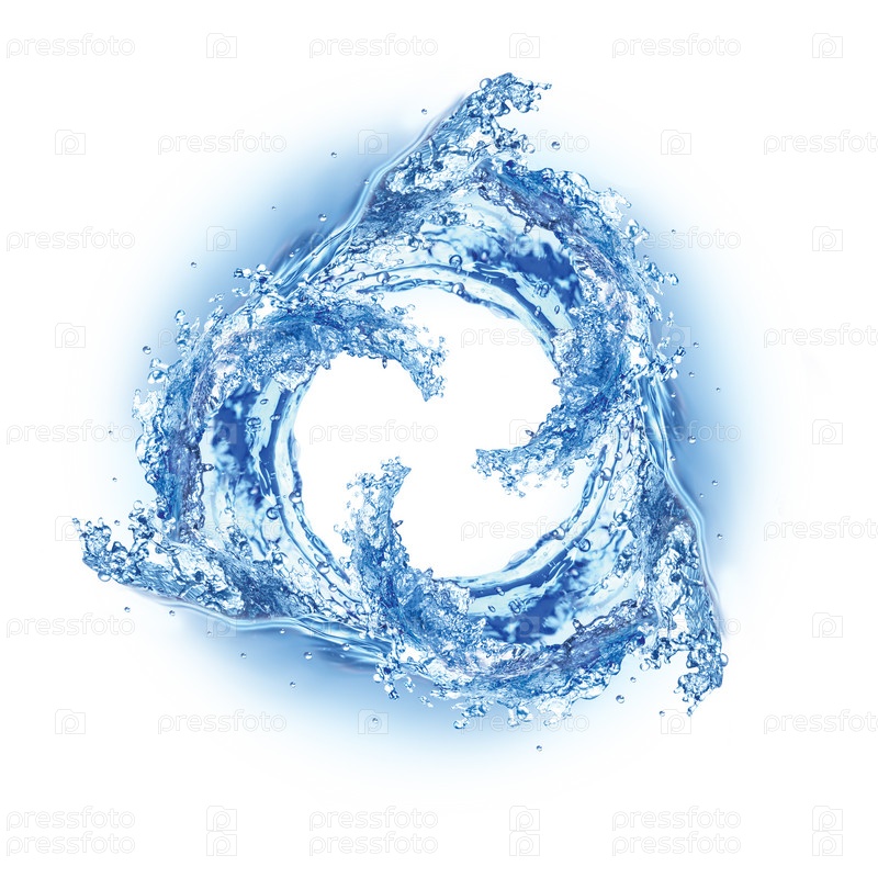 Иллюстрация, прохладные вихревые волны воды на белом изолированном фоне