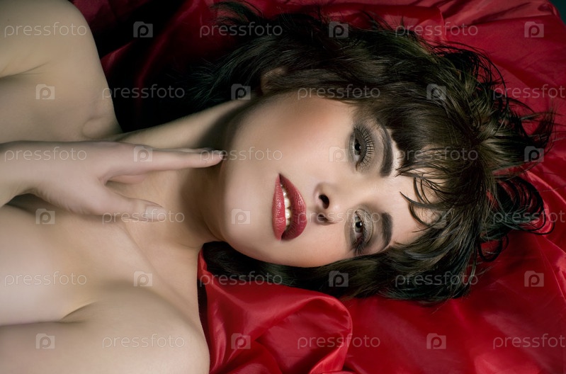 Чувственный красивая женщина на красном шелке