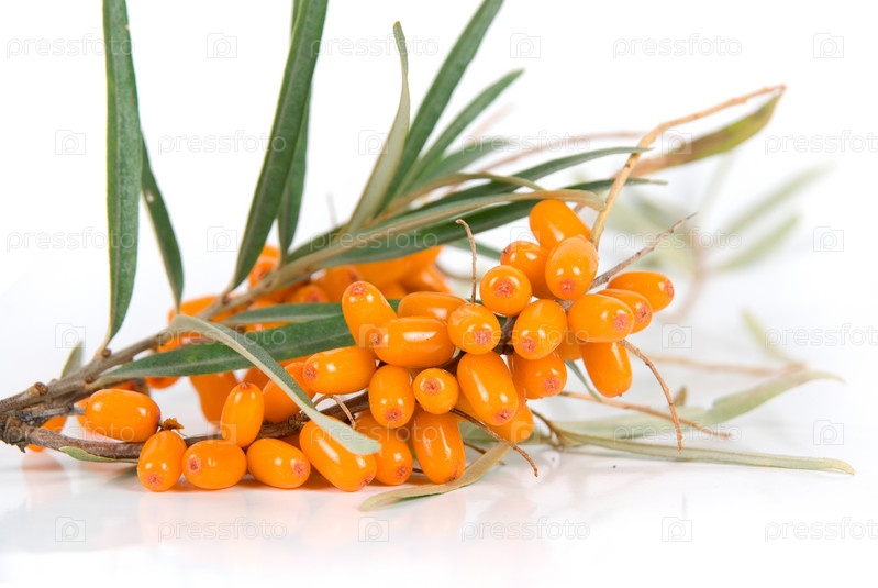 Ветка облепихи на белом фоне