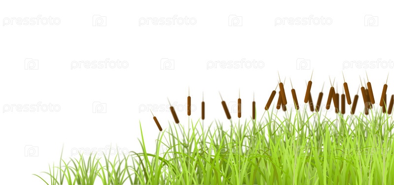 Болотная трава,рогоз,изолированная на белом фоне