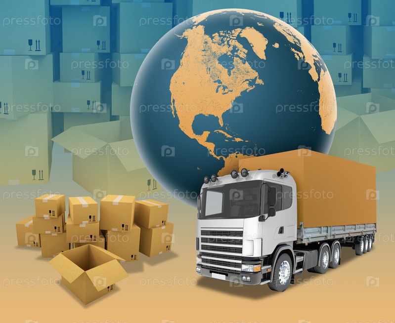 Белый грузовик и коробки