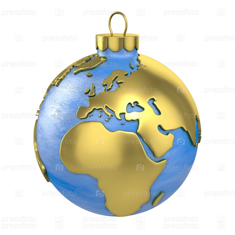 Рождественский шар в форме планеты на белом фоне